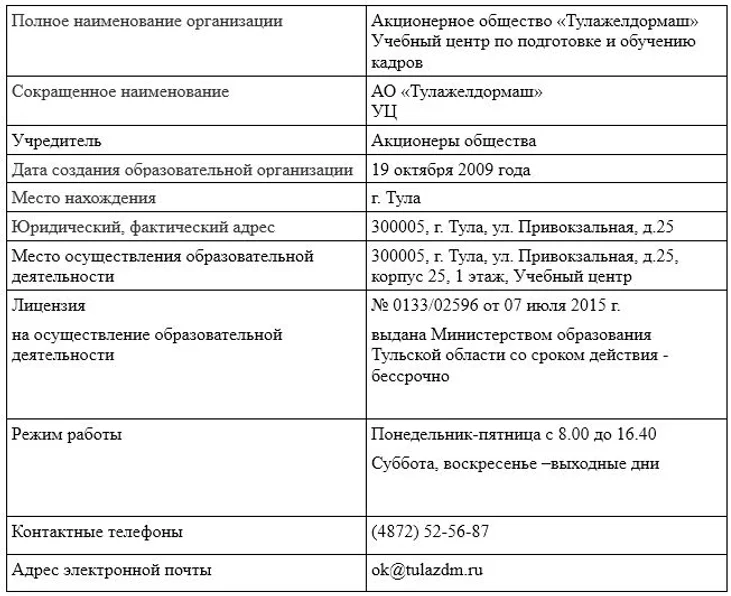 Об Учебном центре АО «Тулажелдормаш»: