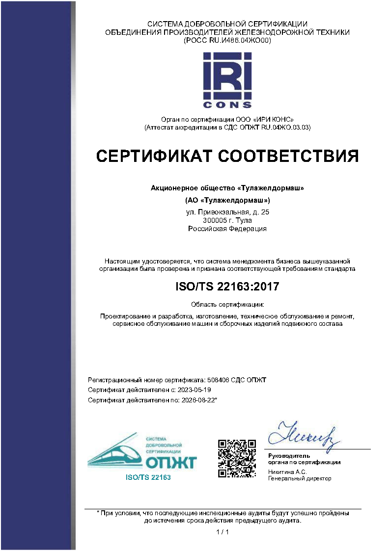 Для реализации Политики мы внедряем и обеспечиваем функционирование системы менеджмента бизнеса в соответствии с требованиями международного стандарта ISO/TS 22163 с учетом принципа предупреждения несоответствий и предотвращения отказов
