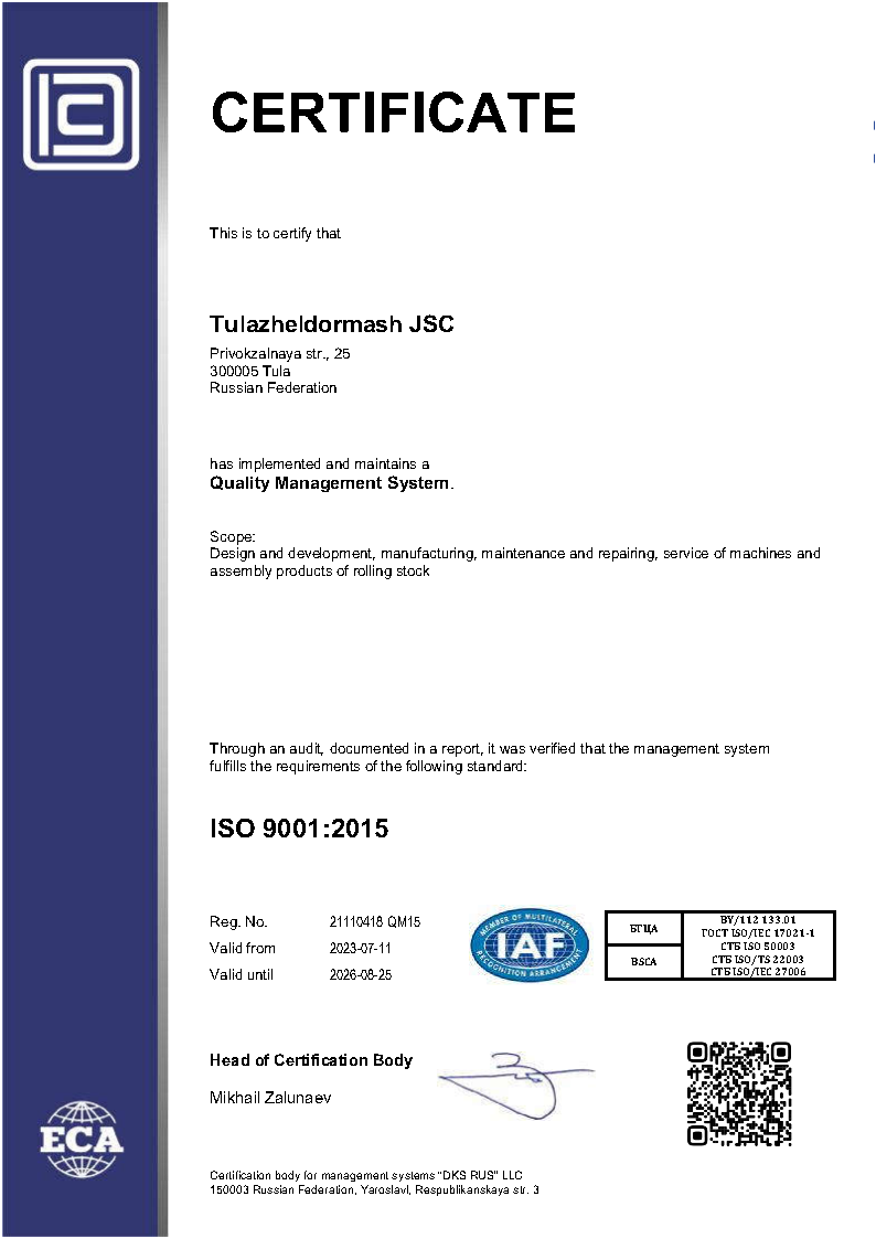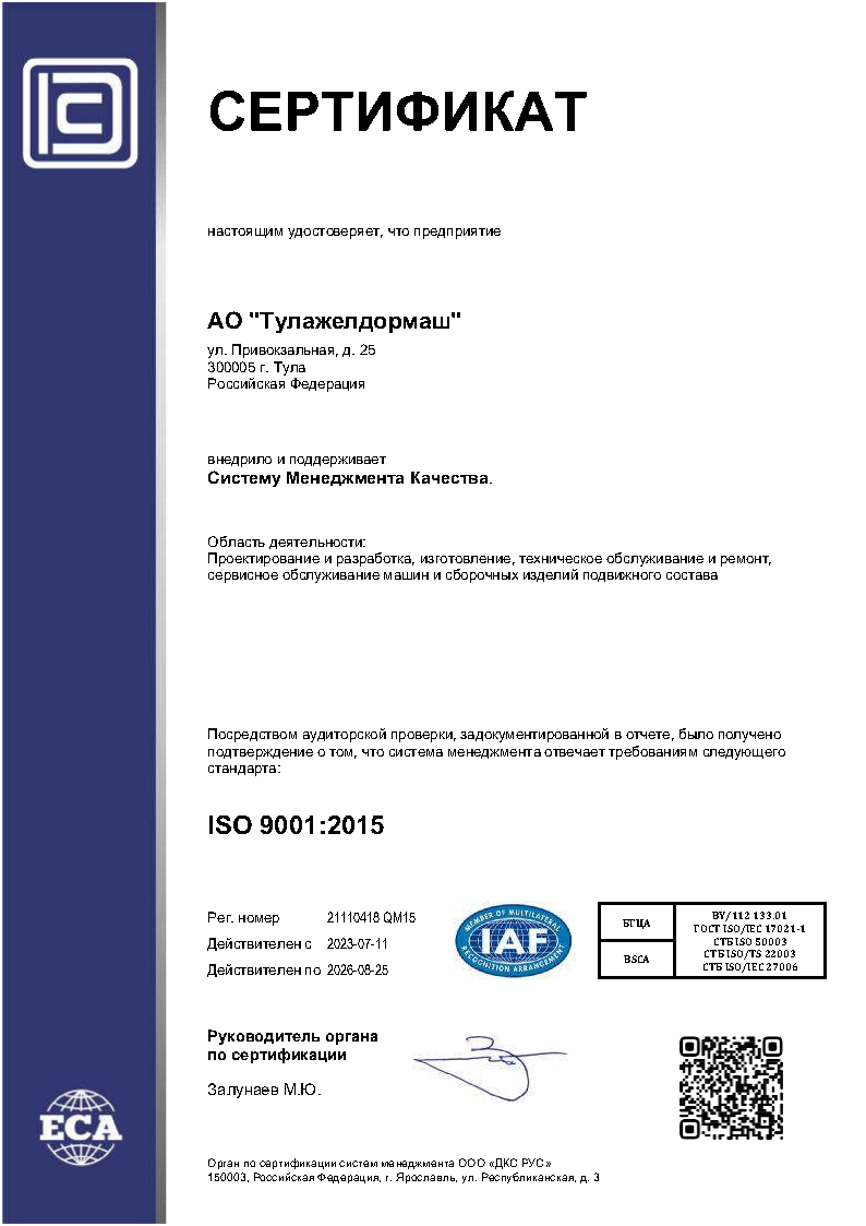 Руководство и персонал АО «Тулажелдормаш» берут на себя ответственность за реализацию данной Политики в области качества, технической безопасности и развития производственной системы и постоянное улучшение системы менеджмента бизнеса.